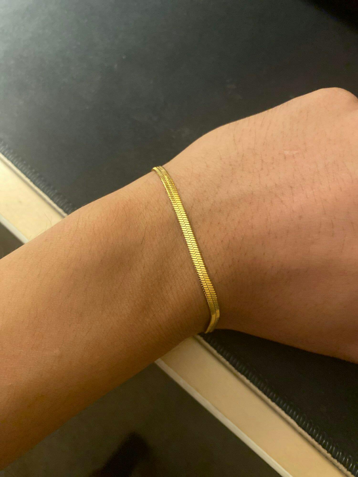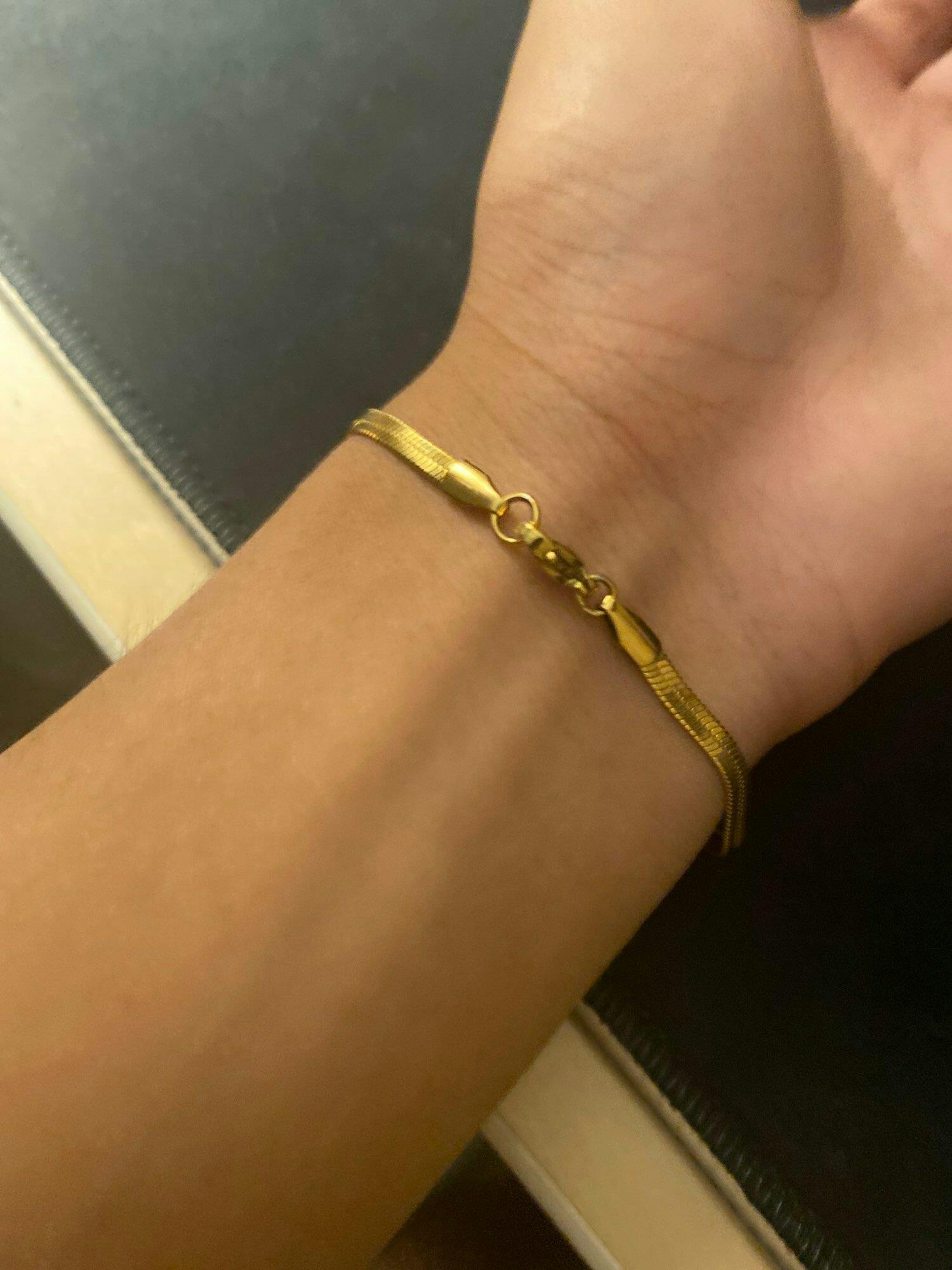 A sleek and sophisticated Herringbone bracelet crafted on snake chain. The smooth and polished feel will compliment any look.